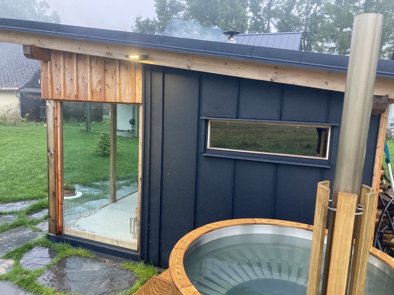 Chcete relaxovat? Máme privátní wellness - finskou saunu a termální koupací sud s teplotou vody 35 až 39 stupňů.